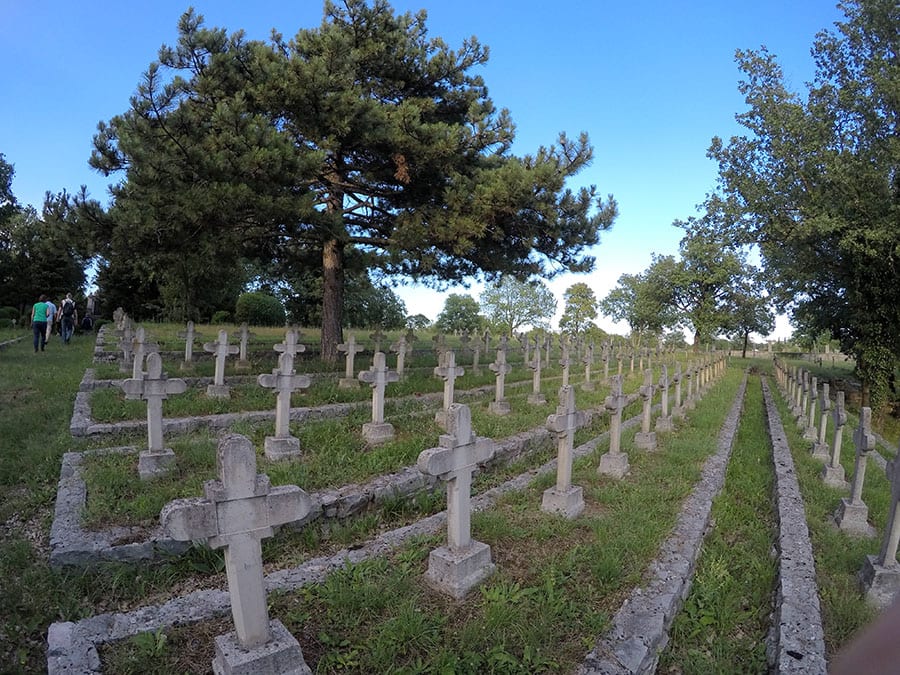 Prema kanjonu Soče smo krenuli sa Krasa, odnosno Kraške regije gdje smo posjetili prekrasan gradić Štanjel i okolne povijesne znamenitosti poput starog austrougarskog groblja Gorjansko. Uz Gorjansko groblje smo odmah učili zanimljivu oznaku “Pot Miru“, koja nas je zatim pratila cijelo vrijeme ovog zanimljivog putovanja.